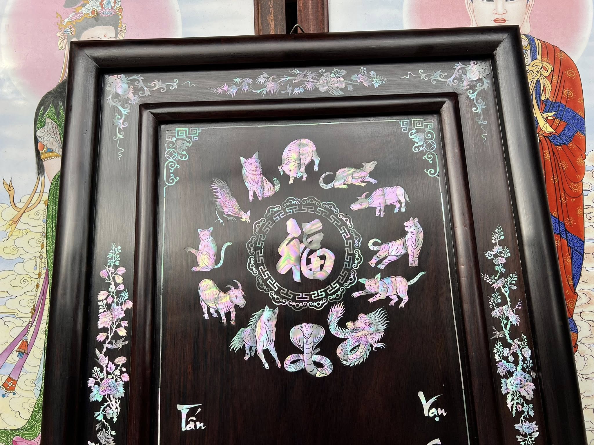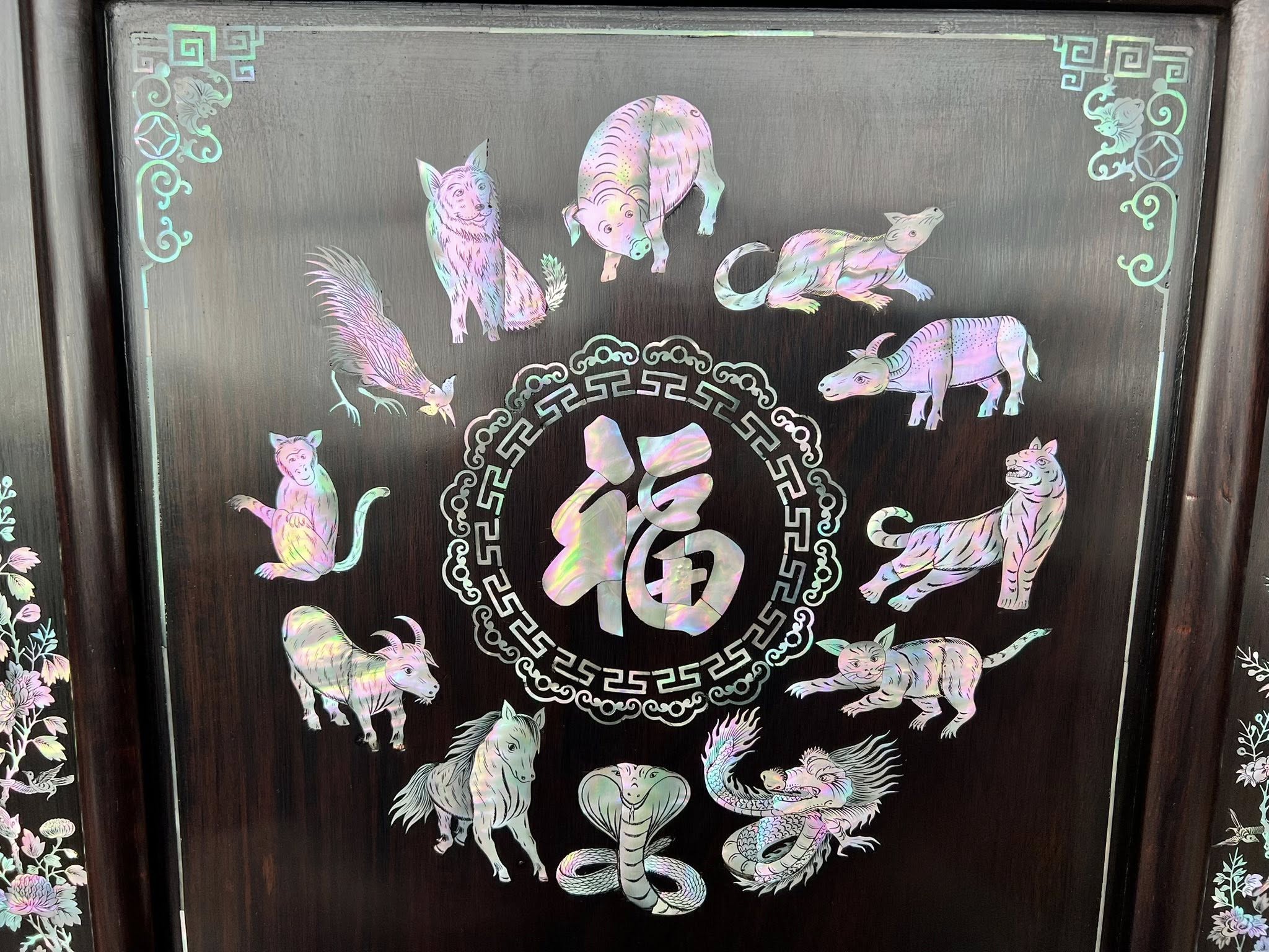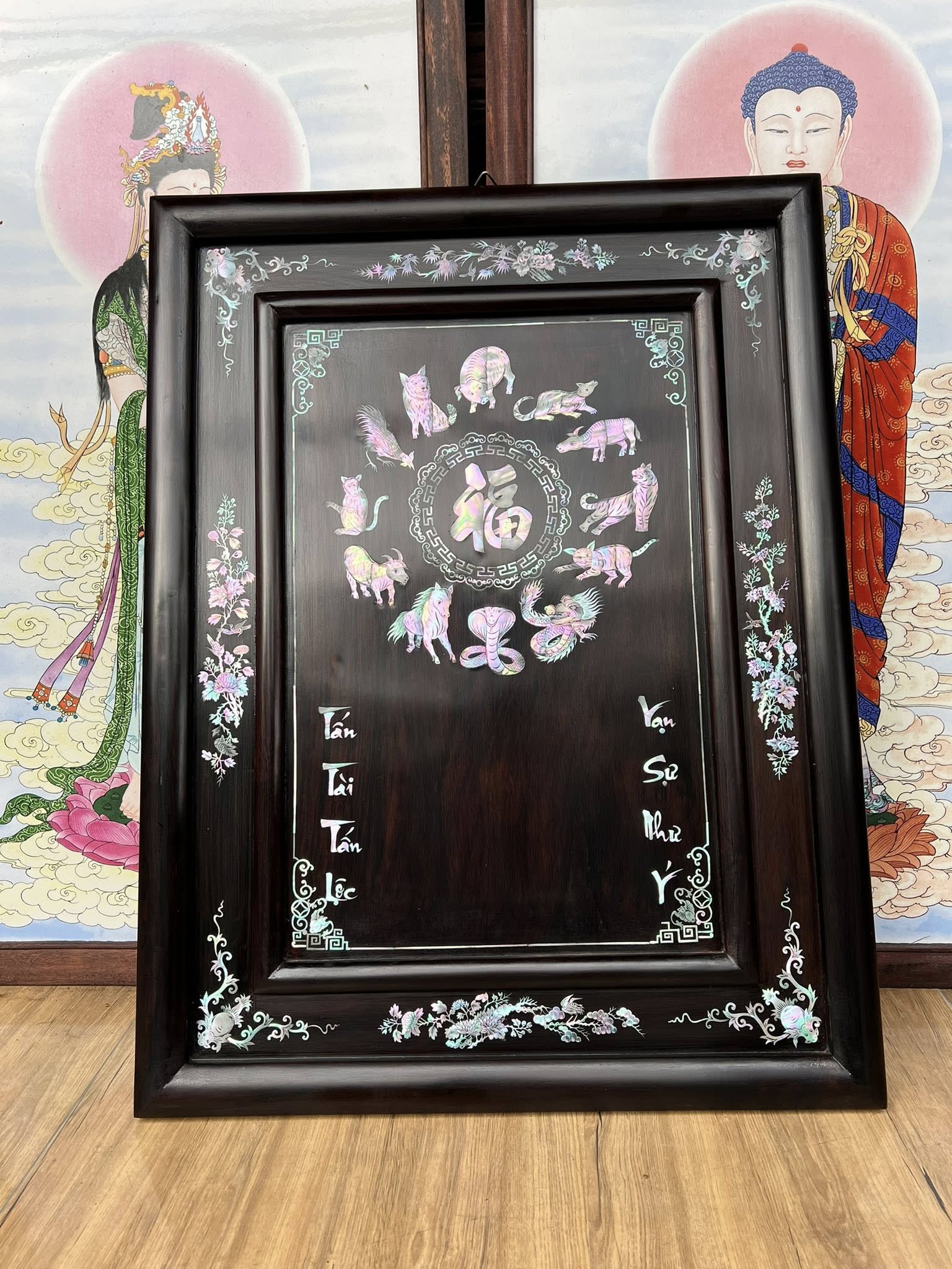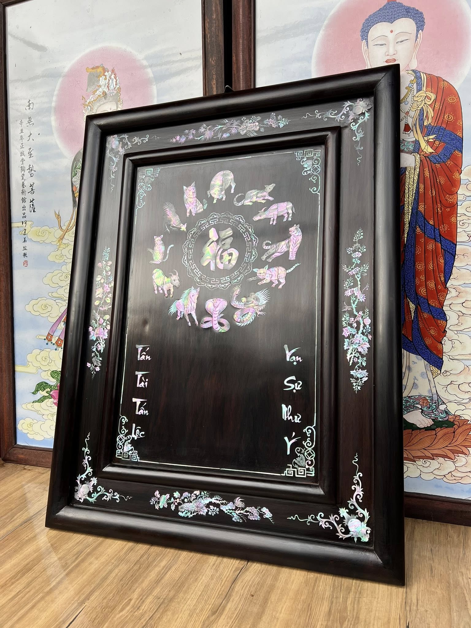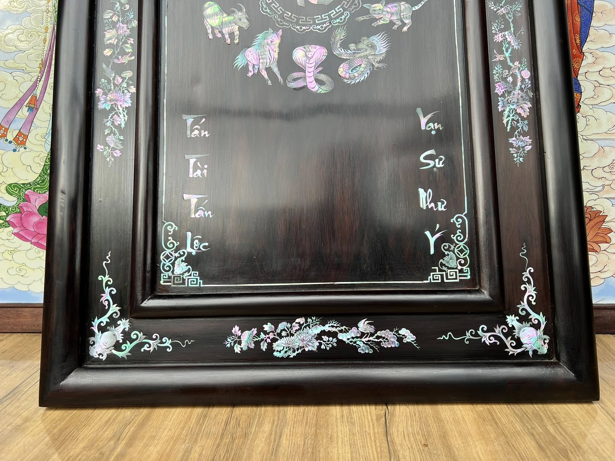Bức Tranh Đốc Lịch Gỗ Trắc ta,khảm ốc đỏ đẹp kĩ,tích 12 Con Giáp