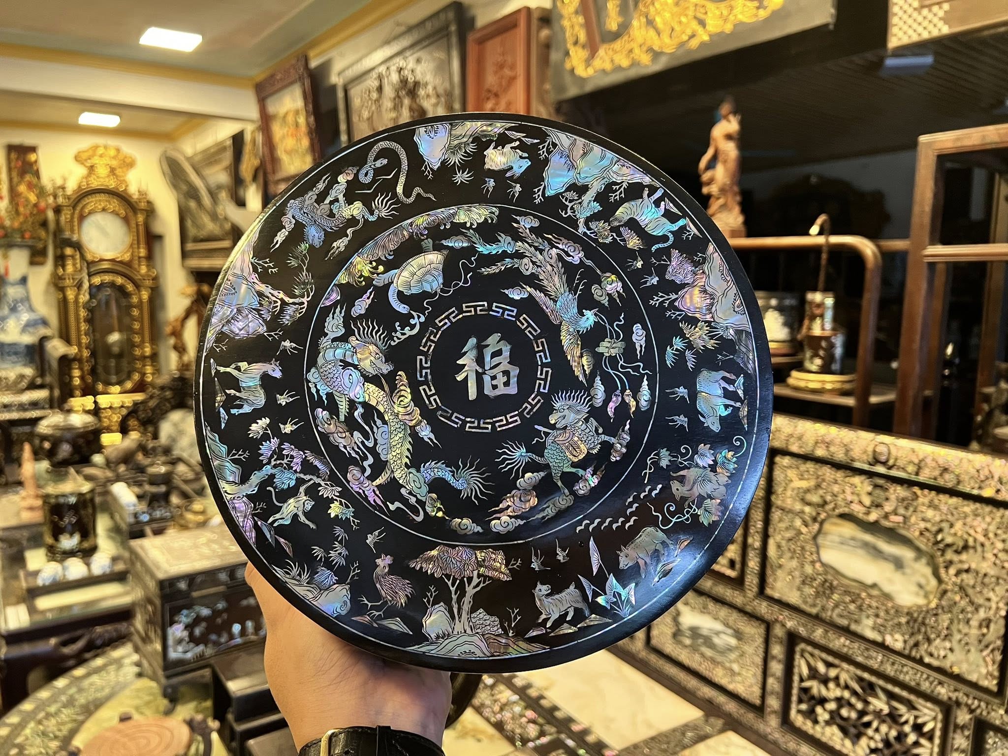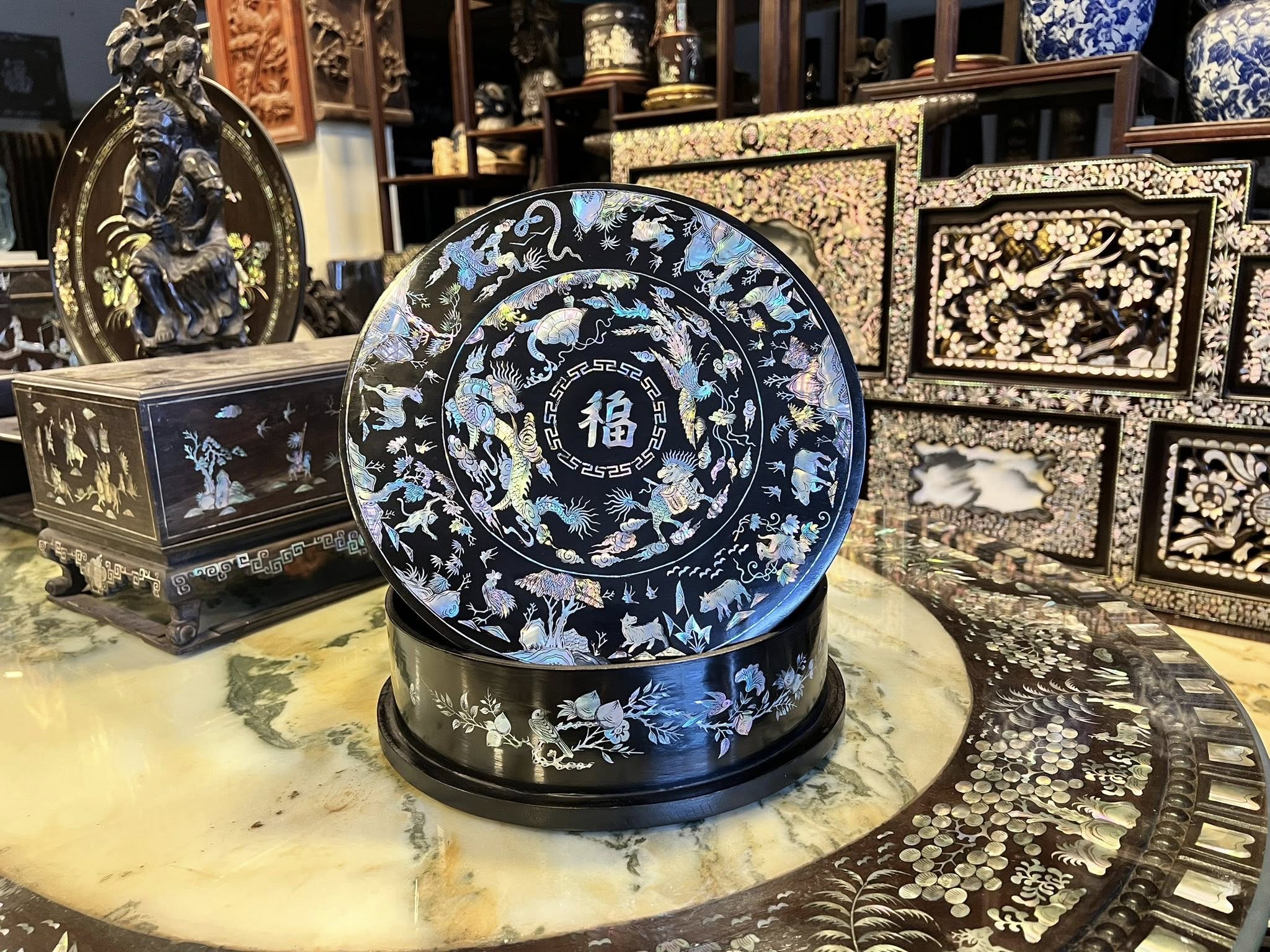 – Được làm bằng Gỗ gụ khảm ốc tích 12 Con Giáp & Phú Quý Bạc Đầu..tích rất hay và ý nghĩa