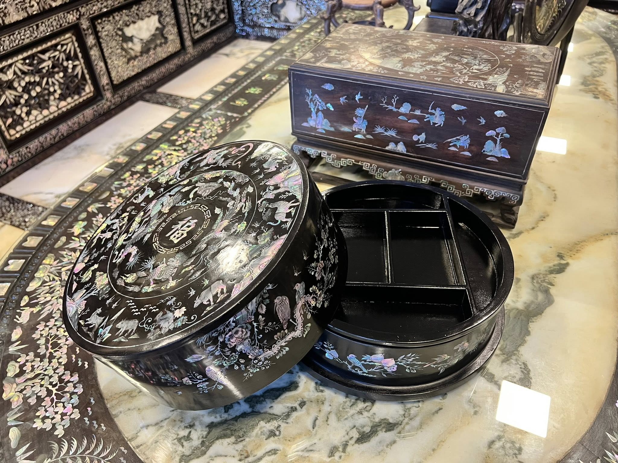 Chiếc Hộp Tráp Đựng Bánh Kẹo,Trầu Cau,Trang Sức…được khảm ốc rất tỷ mỷ kỹ thuật cao trên từng chi tiết nhỏ,đẹp và thể hiện sự tinh tế và sang trọng..là 1 trong những mẫu hộp tráp đẹp được rất nhiều Khách Hàng ưu thích và tìm kiếm