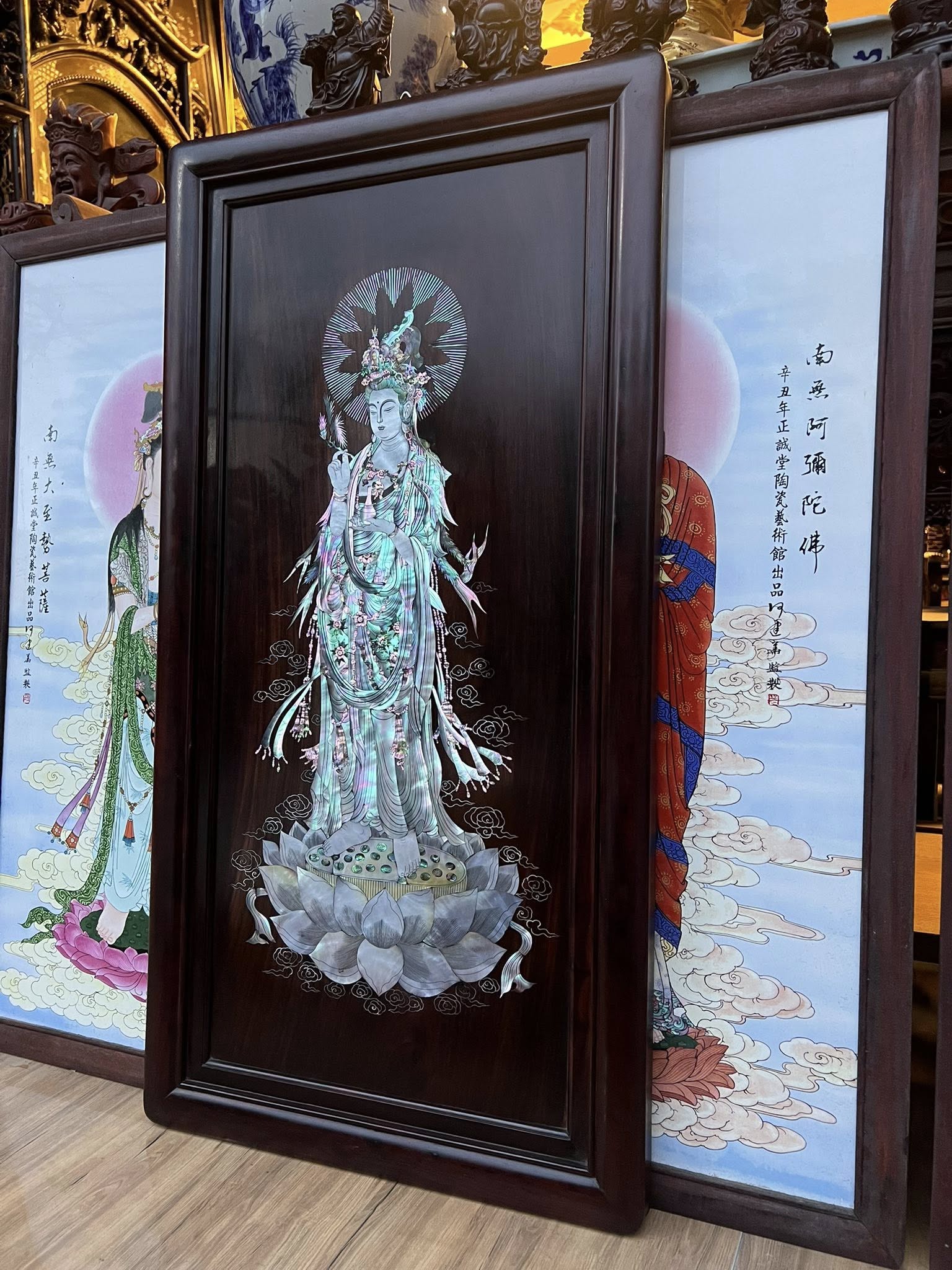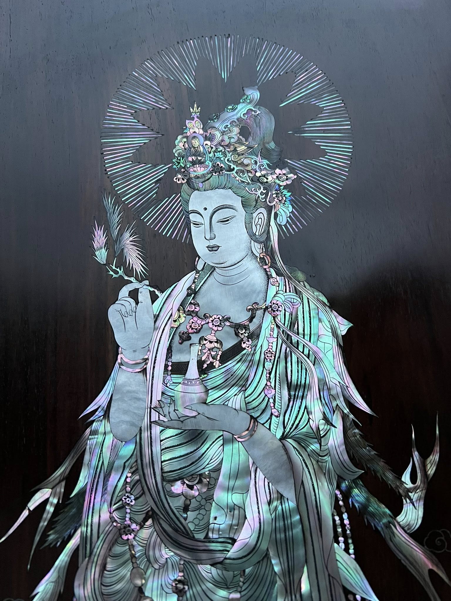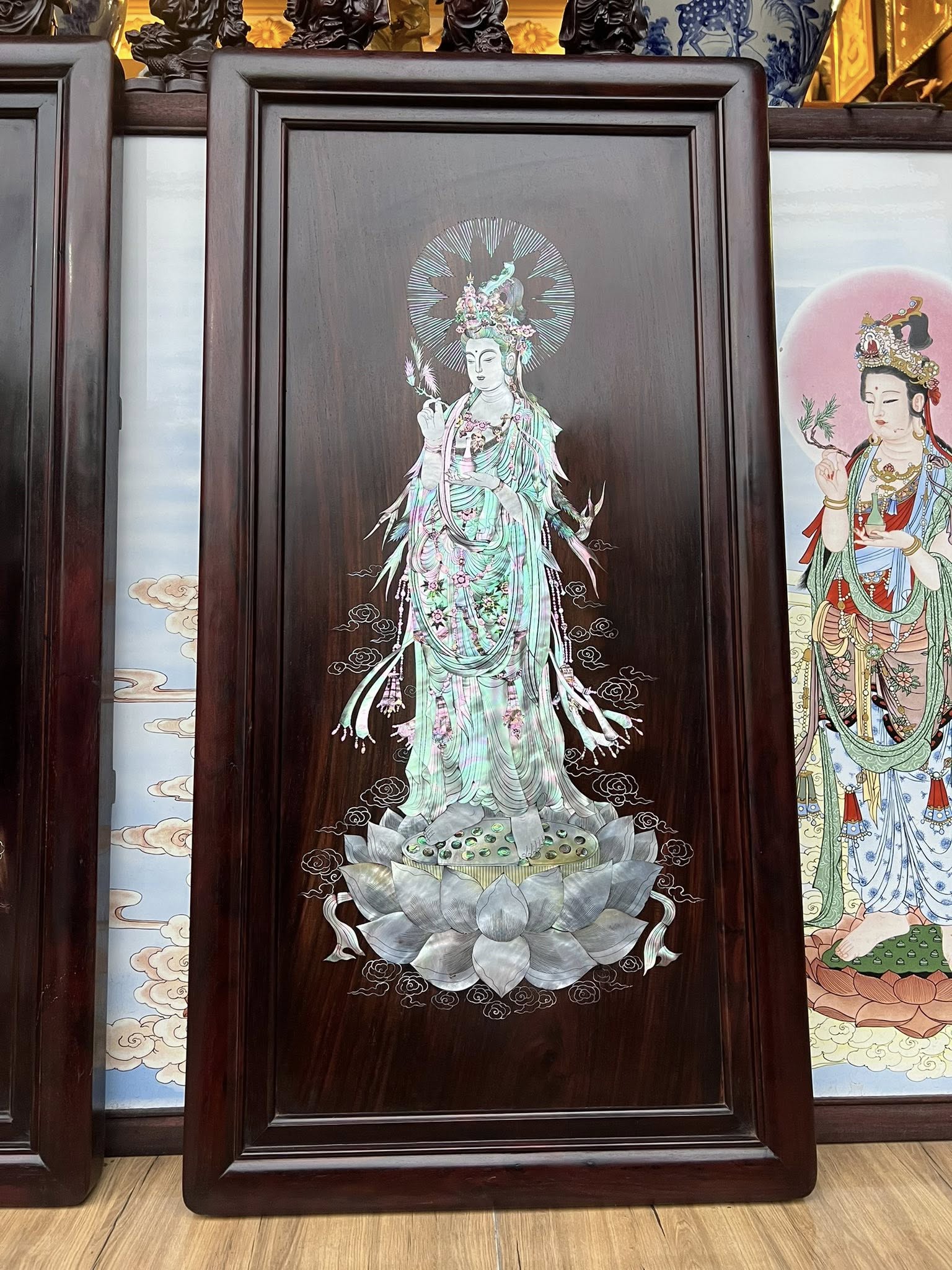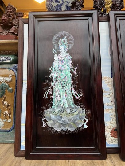 BỨC TRANH QUÁN THẾ ÂM GỖ TRẮC TA KHẢM ỐC TRUYỀN THẦN ĐẸP KĨ THUẬT CAO,PHẬT QUÁN THẾ ÂM BỒ TÁT..là biểu tượng cho cầu bình an,may mắm tài lộc…